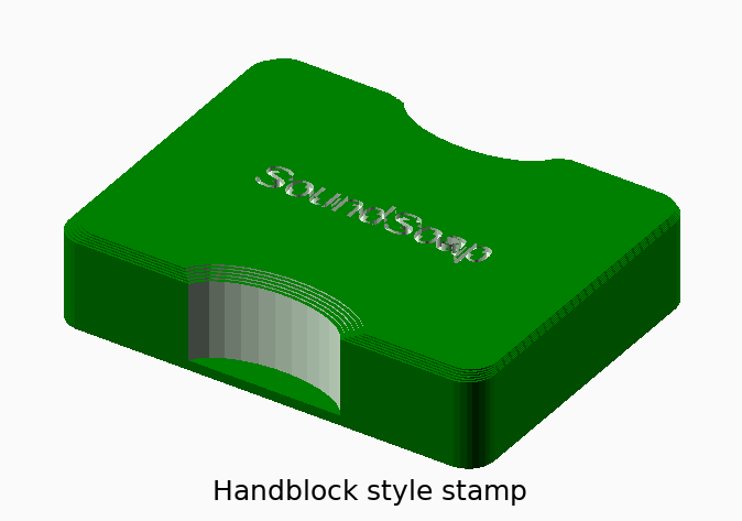 2. Alternatively we can make you one with a handle (handblock), which probably makes it easier to use, when you want to push the stamp into the soap. We also would suggest this style if you are planning on stamping a lot of bars, as this style is really solid.