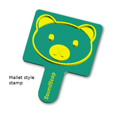 This is a straight forward bear face, but with a 3D twist: The snout and ears are less deep than the rest, giving it a distinct look. In order to archive this look on our soap you need to stamp at least 2mm deep, but most people stamp deeper anyway.