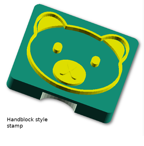 This stamp's top is outlined along the ears. This helps to position the stamp in case you use it together with our matching bear scraper.