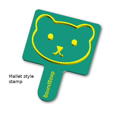 As with all our stamp these are printed in biodegradable PLA. Usually we print the mallet style in translucent material, so you can see the soap through the stamp for accurate placing. The hand stamp often is printed in what ever colour is in the printer - most often simply white.