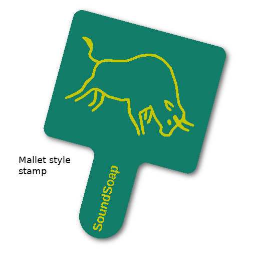 As with all our stamp these are printed in biodegradable PLA. Usually we print the mallet style in translucent material, so you can see the soap through the stamp for accurate placing. The hand stamp often is printed in what ever colour is in the printer - most often simply white.