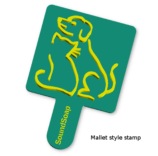 As with all our stamp these are printed in biodegradable PLA. Usually we print the mallet style in translucent material, so you can see the soap through the stamp for accurate placing. The hand stamp often is printed in what ever colour is in the printer - most often simply white.