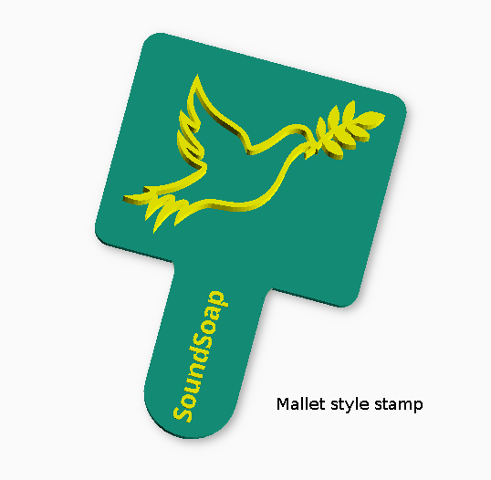 As with all our stamp these are printed in biodegradable PLA. Usually we print the mallet style in translucent material, so you can see the soap through the stamp for accurate placing. The hand stamp often is printed in what ever colour is in the printer.