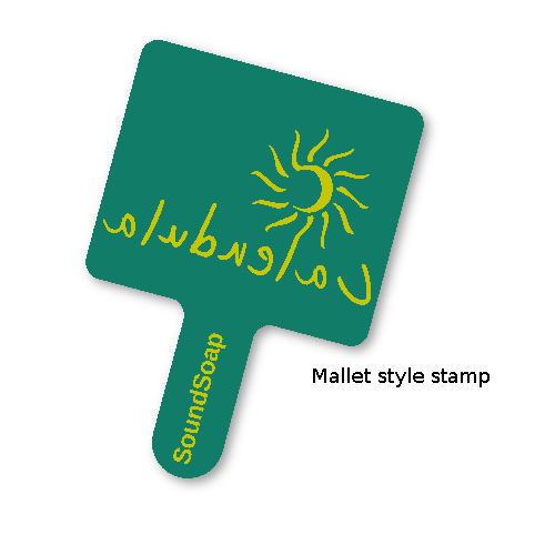 As with all our stamp these are printed in biodegradable PLA. Usually we print the mallet style in translucent material, so you can see the soap through the stamp for accurate placing. The hand stamp often is printed in what ever colour is in the printer - most often simply white.