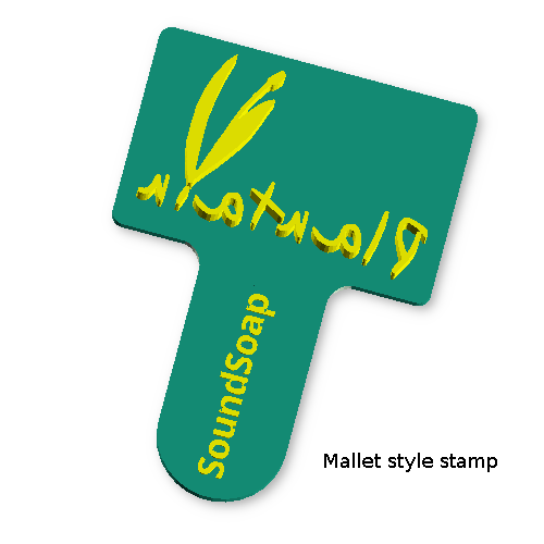 As with all our stamp these are printed in biodegradable PLA. Usually we print the mallet style in translucent material, so you can see the soap through the stamp for accurate placing. The hand stamp often is printed in what ever colour is in the printer - most often simply white.