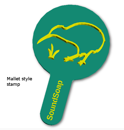 As with all our stamp these are printed in biodegradable PLA. Usually we print the mallet style in translucent material, so you can see the soap through the stamp for accurate placing. The hand stamp often is printed in what ever colour is in the printer - most often simply white.