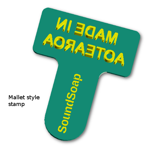 As with all our stamp these are printed in biodegradable PLA. Usually we print the mallet style in translucent material, so you can see the soap through the stamp for accurate placing. The hand stamp often is printed in what ever colour is in the printer - most often simply white or translucent.