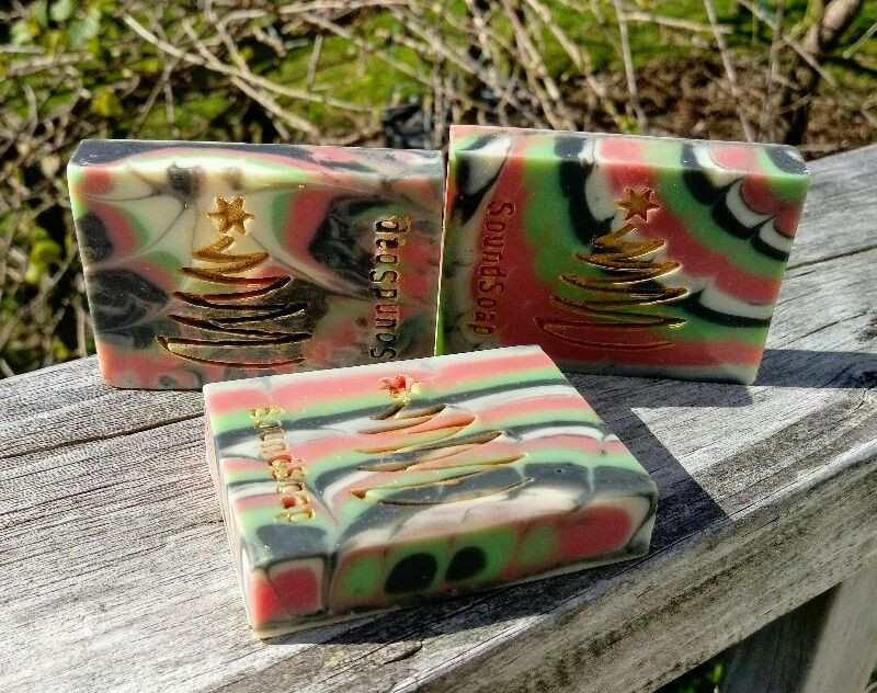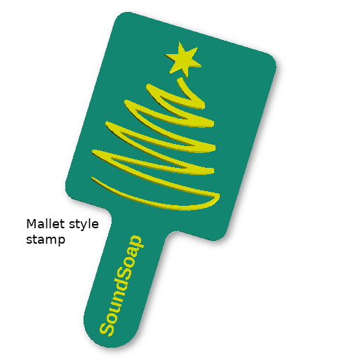 As with all our stamp these are printed in biodegradable PLA. Usually we print the mallet style in translucent material, so you can see the soap through the stamp for accurate placing. The hand stamp often is printed in what ever colour is in the printer - most often simply white.