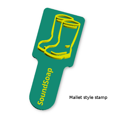 As with all our stamp these are printed in biodegradable PLA. Usually we print the mallet style in translucent material, so you can see the soap through the stamp for accurate placing. The hand stamp often is printed in what ever colour is in the printer - most often simply white.