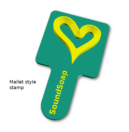 As with all our stamp these are printed in biodegradable PLA. Usually we print the mallet style in translucent material, so you can see the soap through the stamp for accurate placing. The hand stamp often is printed in what ever colour is in the printer - most often simply white.