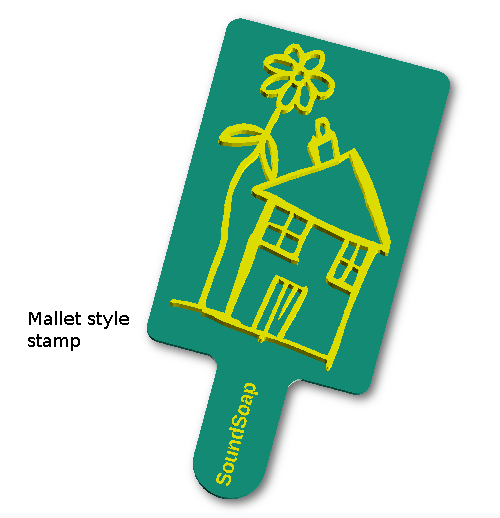 As with all our stamp these are printed in biodegradable PLA. Usually we print the mallet style in translucent material, so you can see the soap through the stamp for accurate placing. The hand stamp often is printed in what ever colour is in the printer - most often simply white.