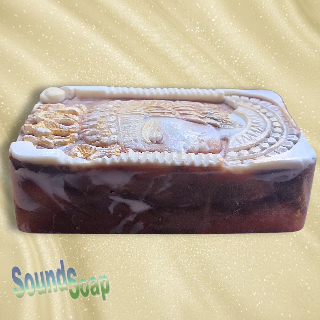 A regal artisan soap bar inspired by ancient royalty, showcasing intricate stone-effect textures.
