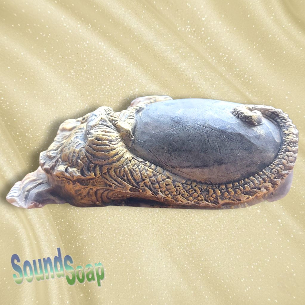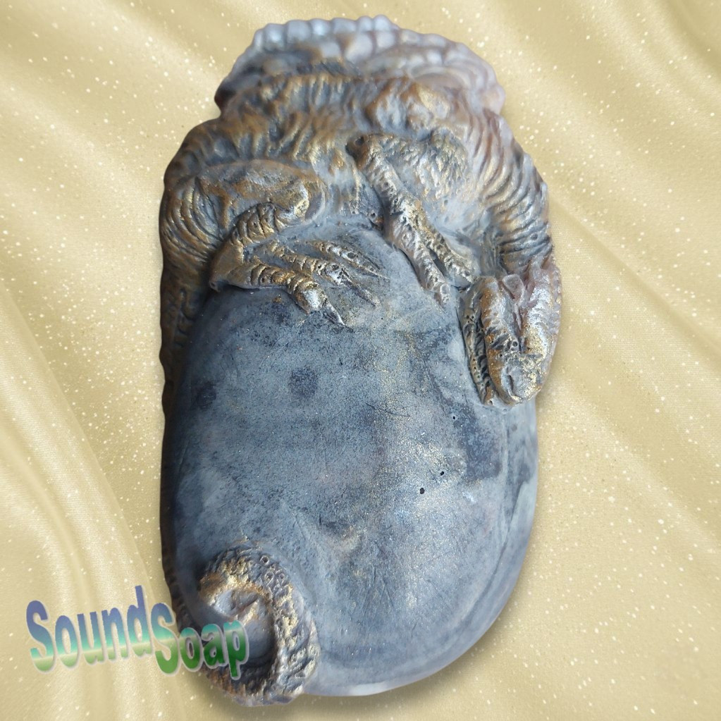 An intricate mythical artisan soap bar featuring a dragon nestled around a dragon egg.