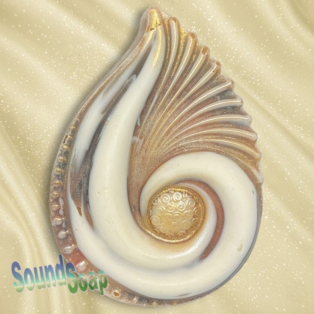 A modern, sculptural artisan soap bar featuring smooth, elegant curves.