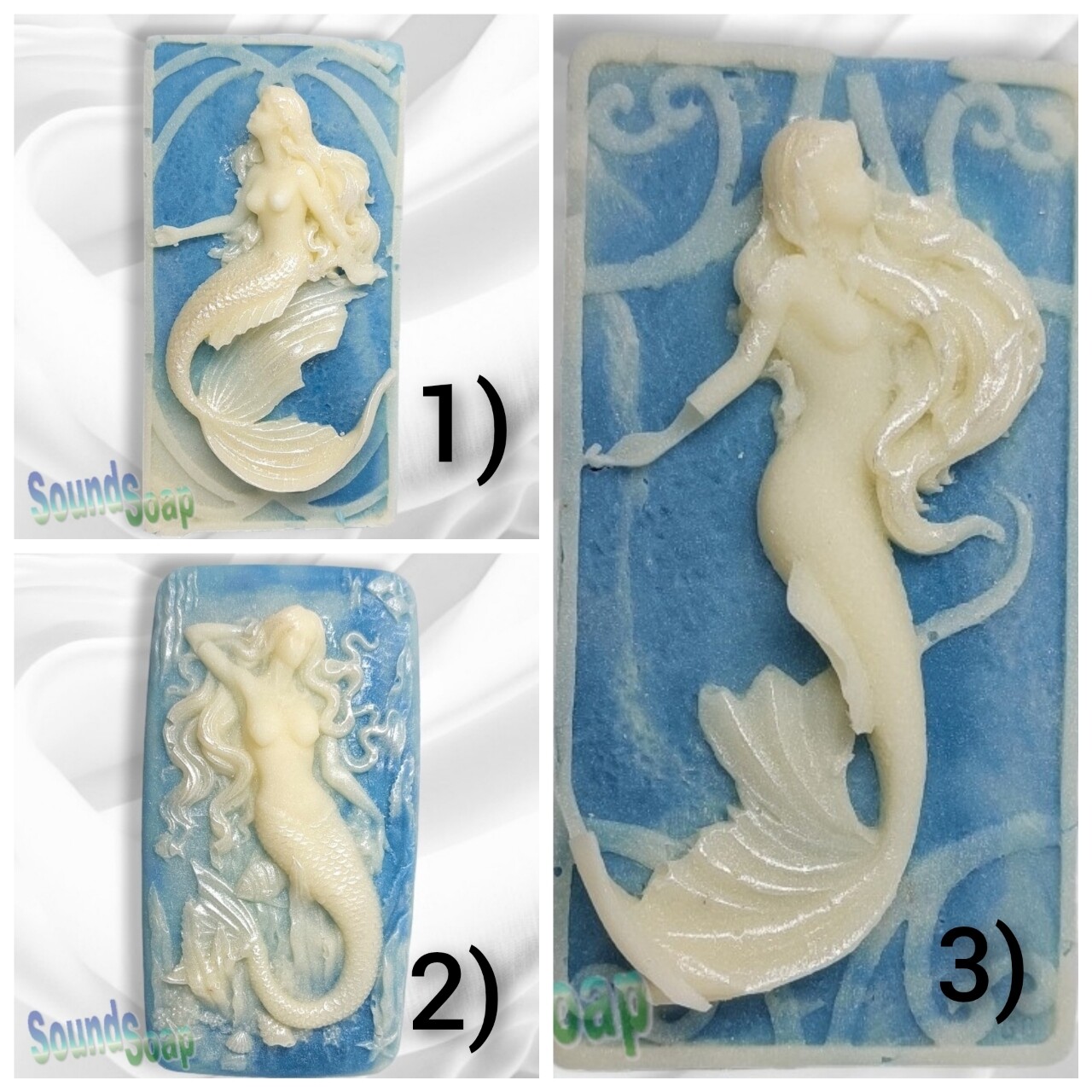 Mermaids, Viking ships, Light tower, Shells and more. Each soap is One-of-a-Kind.