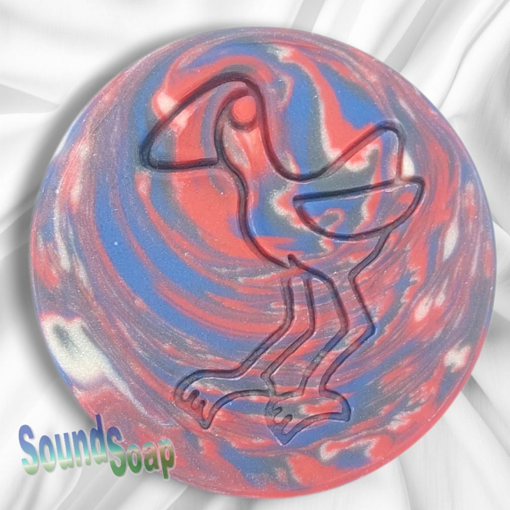 I’ve used deep blues and reds to capture the bird's colours, which creates a different marbled pattern in every bar. Each one is finished with a Pukeko imprint using a stamp made by my husband on his 3D printer.