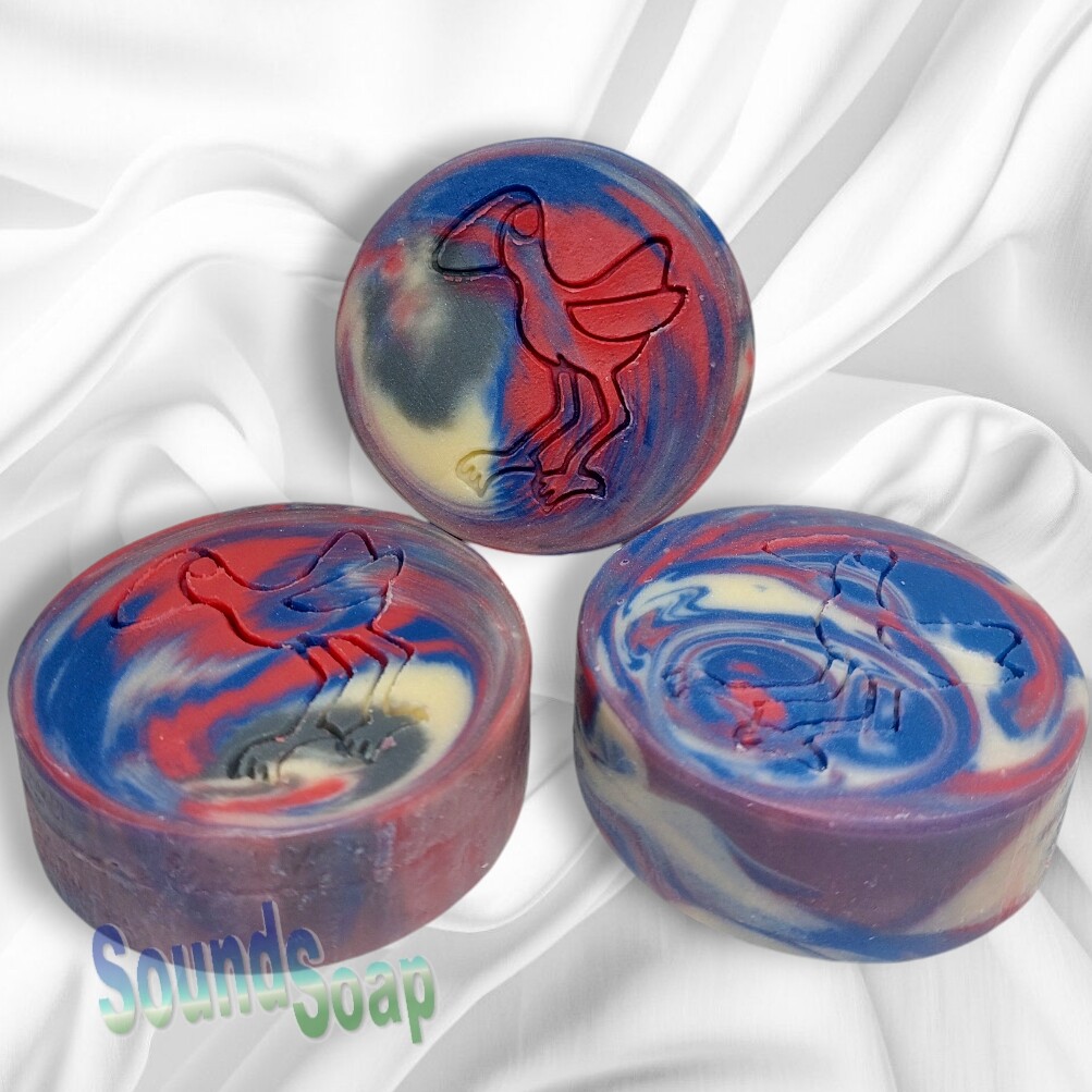 New look and different scent for this soap. I found this new fragrance "Lord of Misrule" and thought this would fit well with the mischievous Pukeko bird.
